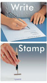 High class metal writing instruments with pre-inked stamp technology